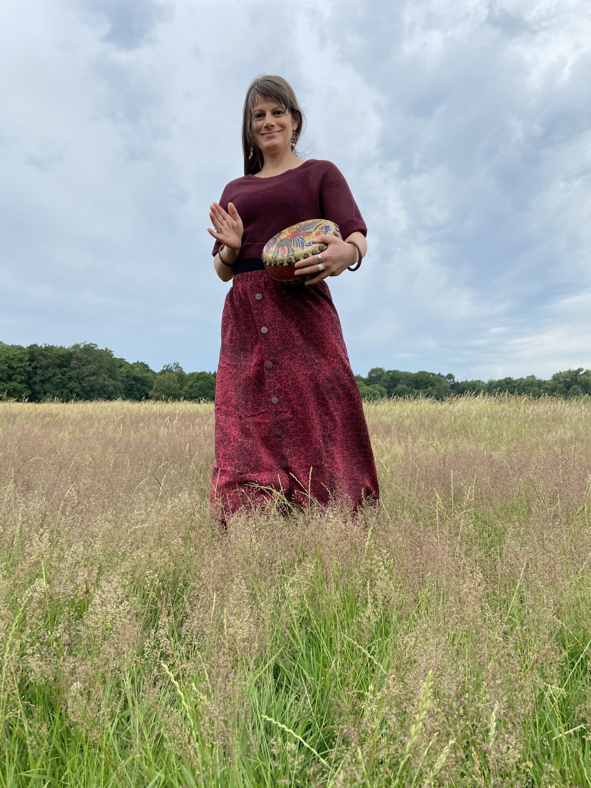 Dies ist hochschwingende Kleidung, nachhaltig und fair genäht in Köln – im Ritual gesegnet und mit handwerklicher Präzision gefertigt. Ausgewählte Stoffe und Naturmaterialien stärken die heilsame Verbindung zu deiner Schöpferkraft, zu Krafttieren, Pflanzen und Farben.